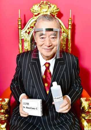 ・2つ目は、ドアノブや手すり、エレベーターの押しボタンなど、手が触れる場所の除菌ができる液剤「Dr.FukiCoro-C(ドクター・フキコロ・シー)」だ。中松氏は「体への安全性も大丈夫」とした上で「突然、できたわけじゃない。02〜03年の重症急性呼吸器症候群(SARS)が発生、流行した頃から、ずっと長いこと研究をやってきた結果、完成した」と語った。