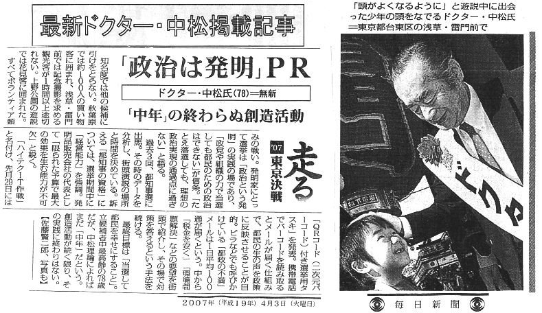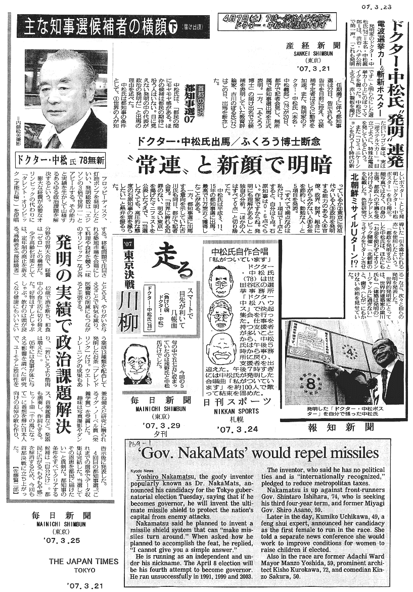 ドクター中松の話題 東京都知事選出馬表明 [政見内容・ドクター中松の掲載記事特集]