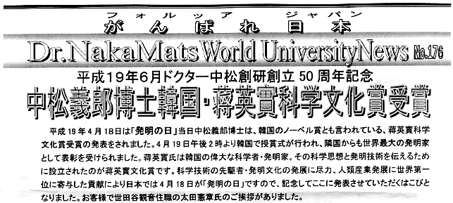 ドクター中松創研の社歌「一勤務心得の歌」が日本経済新聞が主催する「第3回NIKKEI全国社歌コンテスト」で入選し、情熱賞を受賞しました。