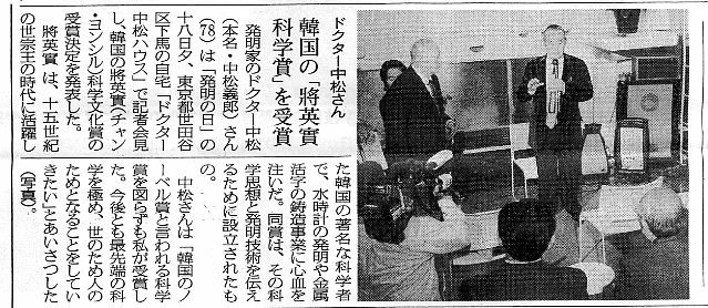 東京国際フォーラムでサー中松博士は記者会見を開催しました。内容は日本経済新聞社から「情熱賞」を受賞された件です。