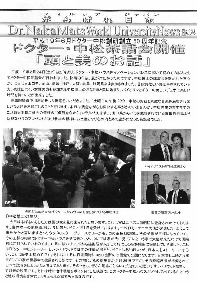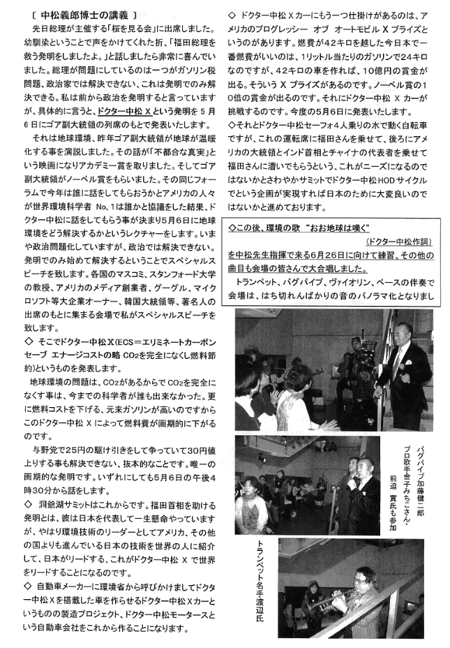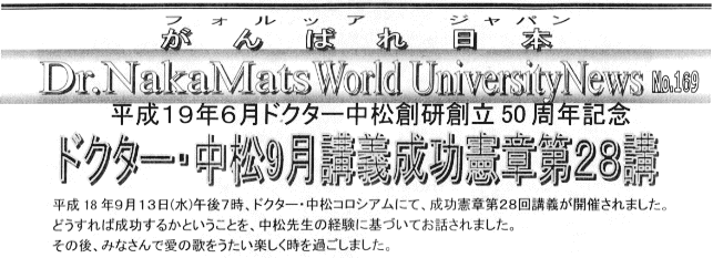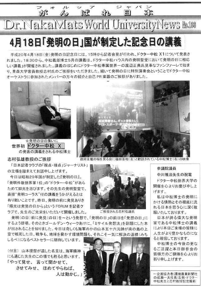 ドクター中松創研の社歌「一勤務心得の歌」が日本経済新聞が主催する「第3回NIKKEI全国社歌コンテスト」で入選し、情熱賞を受賞しました。