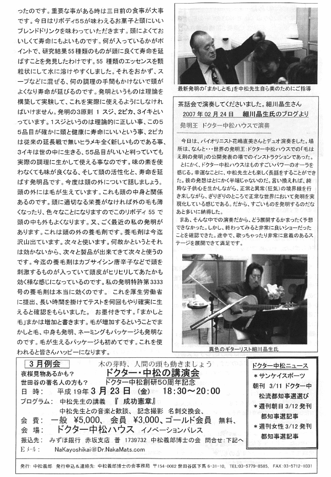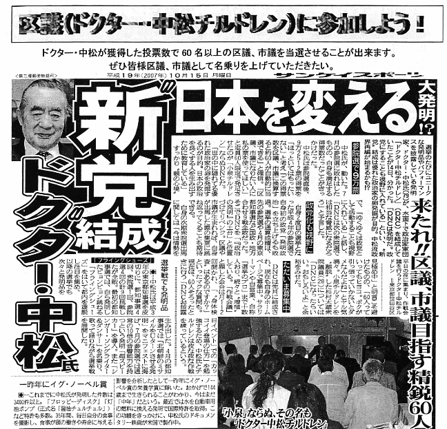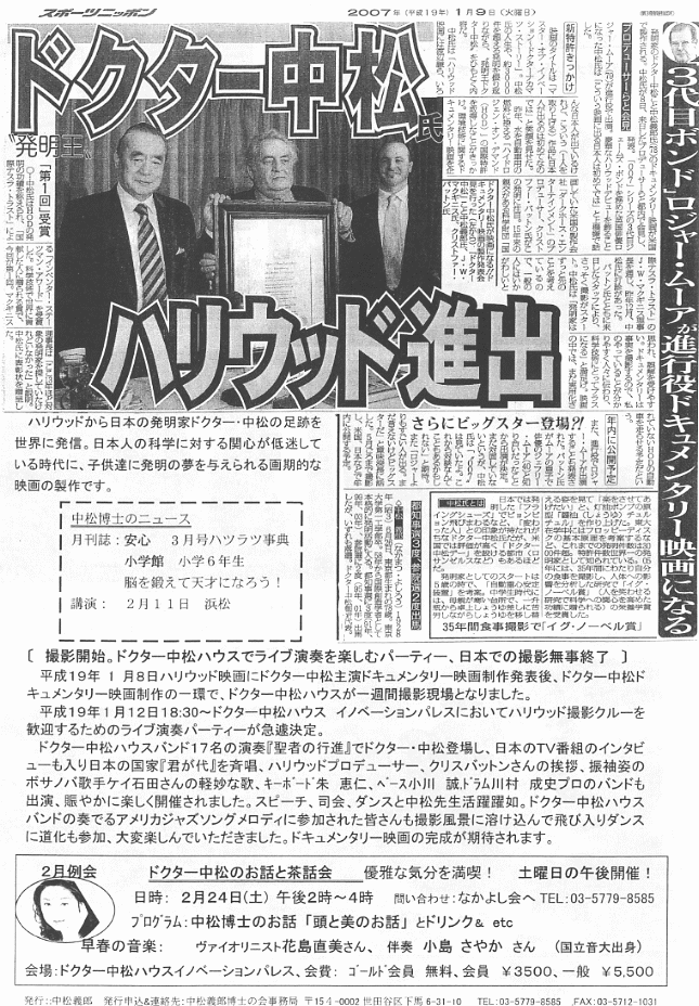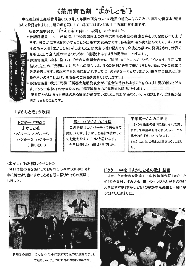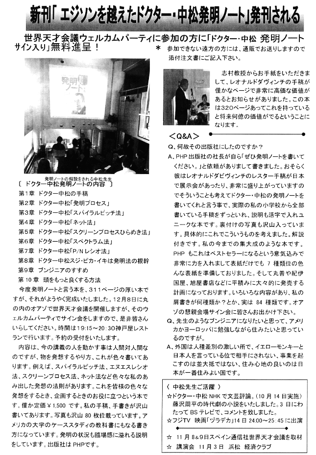 | 記者会見にてサー中松博士は重大発表を行いました。 |