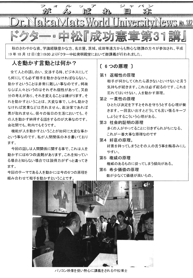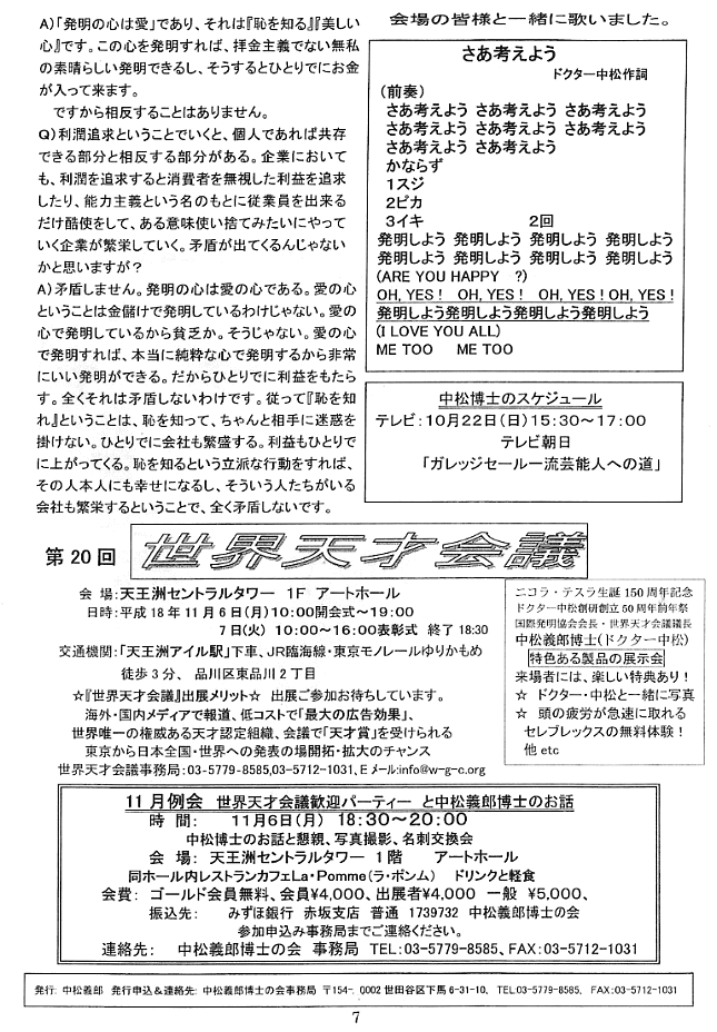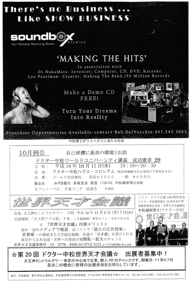 | 「ドクター中松の子宝倍増理論」の必須10項目の定理をサー中松博士は発明されました。 |